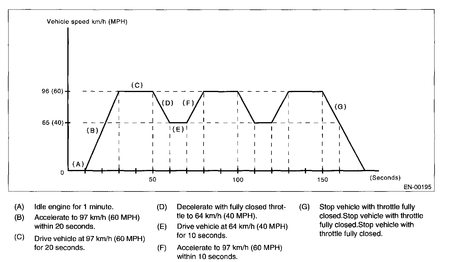 There are three drive patterns for the trouble diagnosis. Driving in the specified pattern allows to diagnose malfunctioning items listed below. After the malfunctioning items listed below are repaired, always check whether they correctly resume their functions by driving in the required drive pattern.