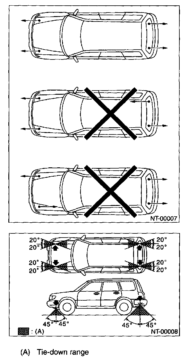 Tie-downs are used when transporting vehicles and when using the chassis dynamo. Attach tie-downs only to the specified points on the vehicle.