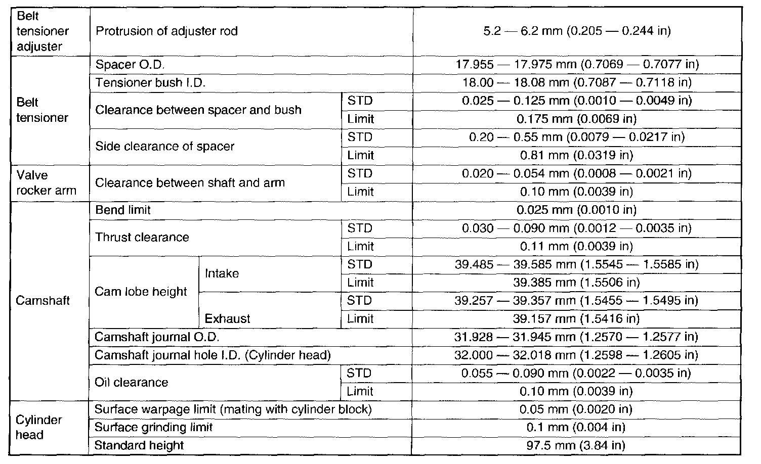STD: Standard I.D.: Inner Diameter O.D.: Outer Diameter US: Undersize OS: Oversize