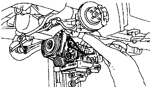7. Tighten the nuts and bolts which hold lower side of transmission to engine.