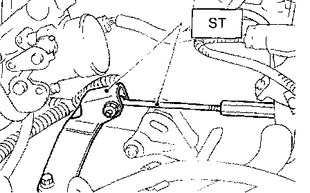 3. Tighten the bolt which holds upper side of transmission to engine.