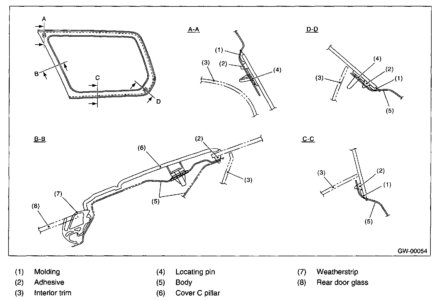 NOTE: For minimum drying time and time the vehicle must be left standing before driving after bonding, follow instructions or instruction manual from the adhesive manufacturer.