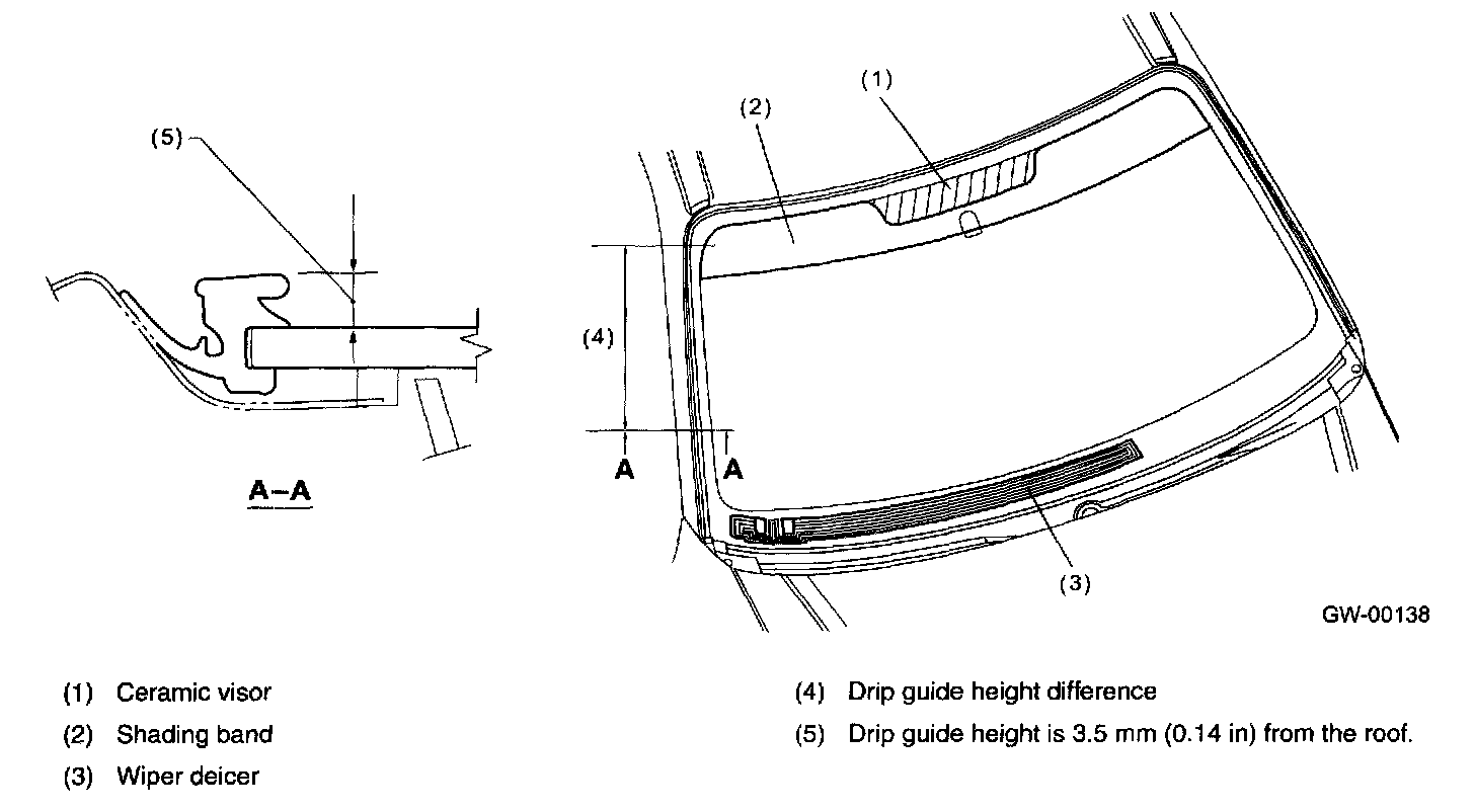 Windshield- To improve shading, a ceramic visor is printed on the upper center area of the windshield where cannot be shaded with the sun visors.