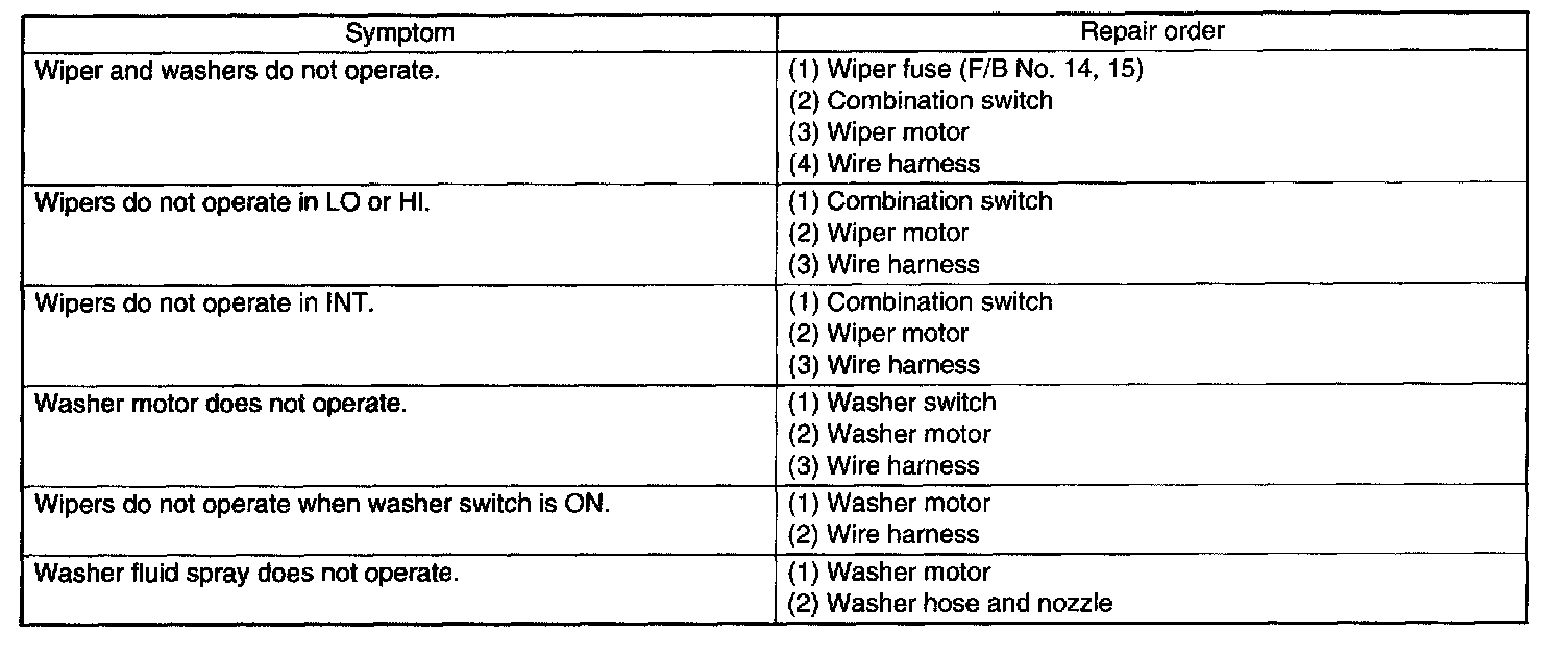 Wiper and Washer Systems: Testing and Inspection
