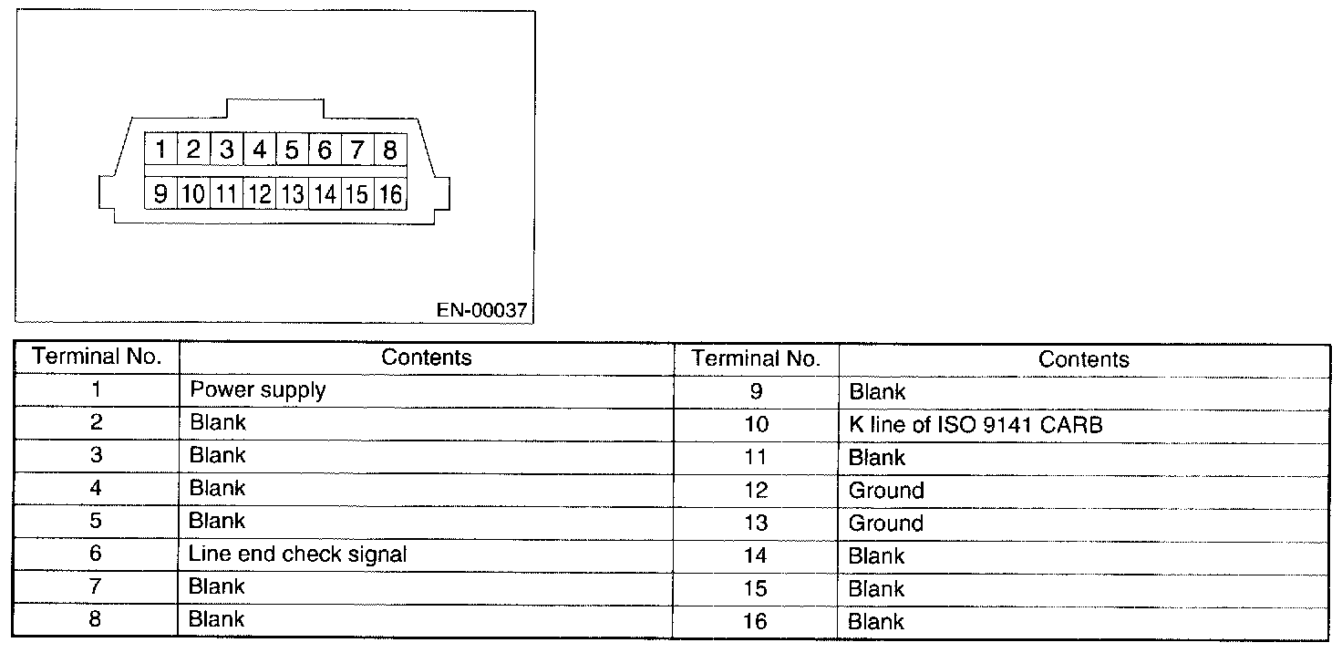 NOTE: This connector is used both for OBD-II general scan tools and the Subaru Select Monitor.