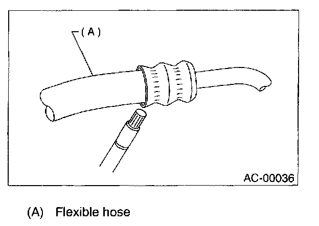 11. Disconnect the drain hose from the evaporator case, and check the hose end for at least 10 seconds. After the test is finished, reconnect the drain hose.