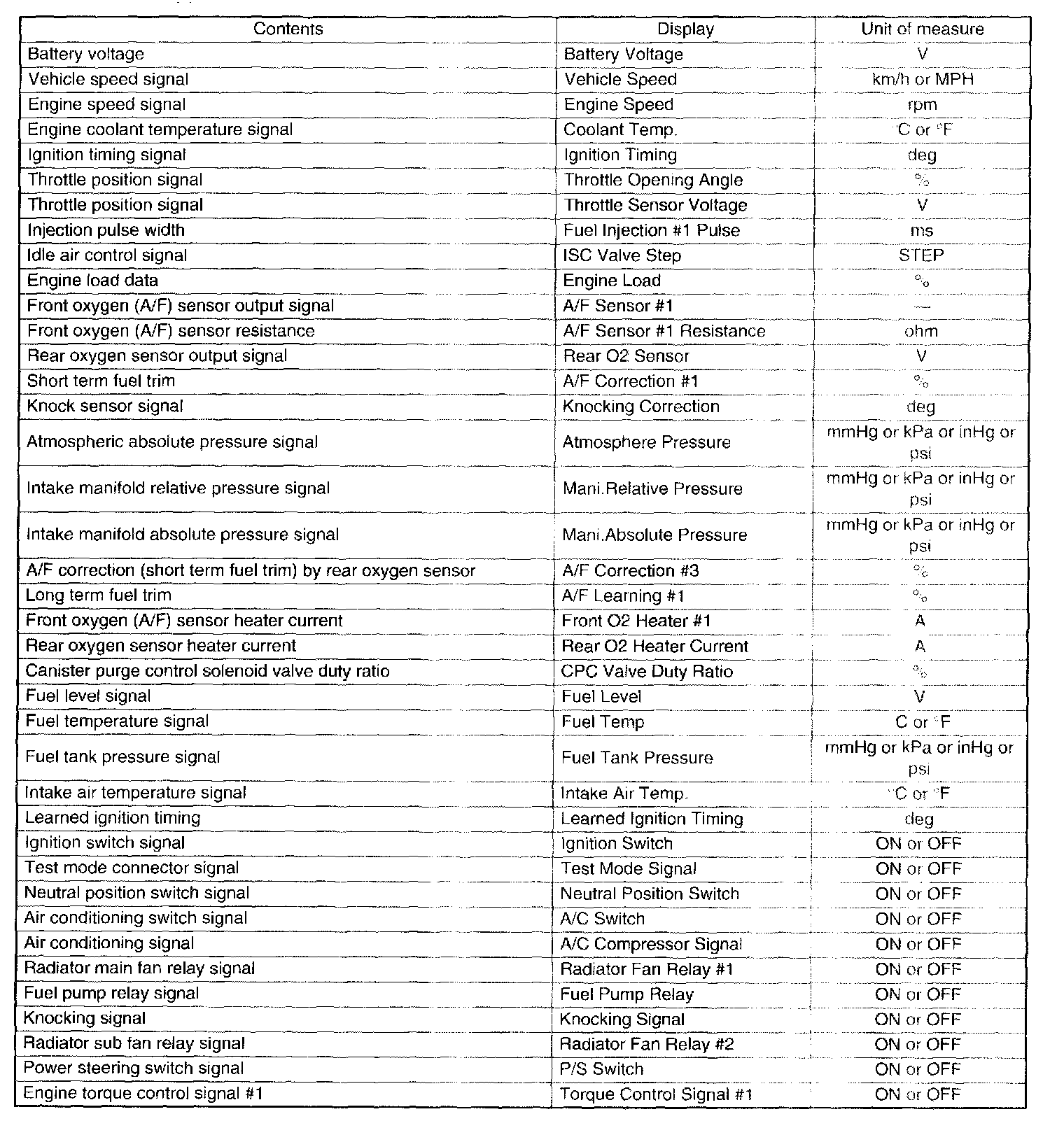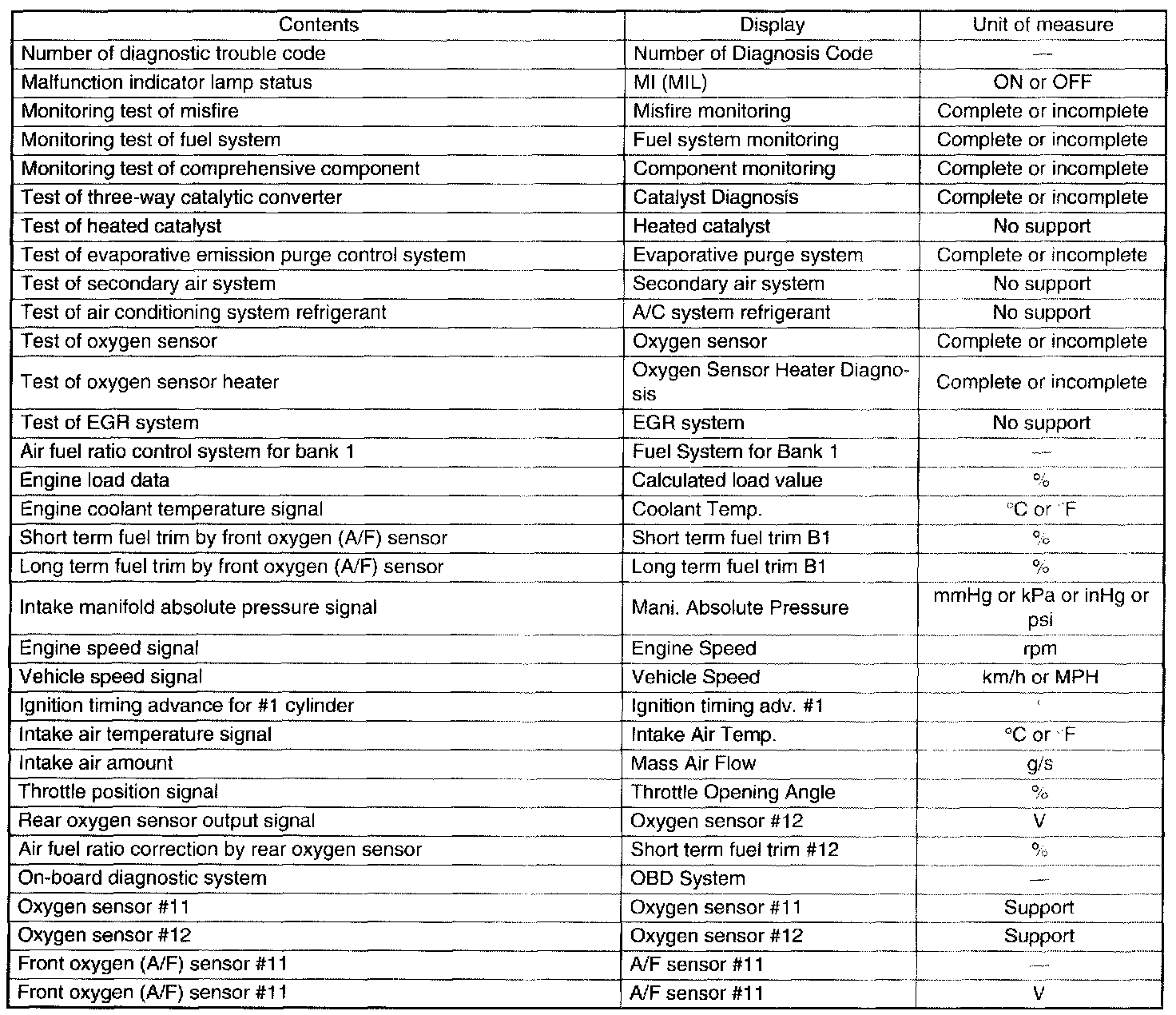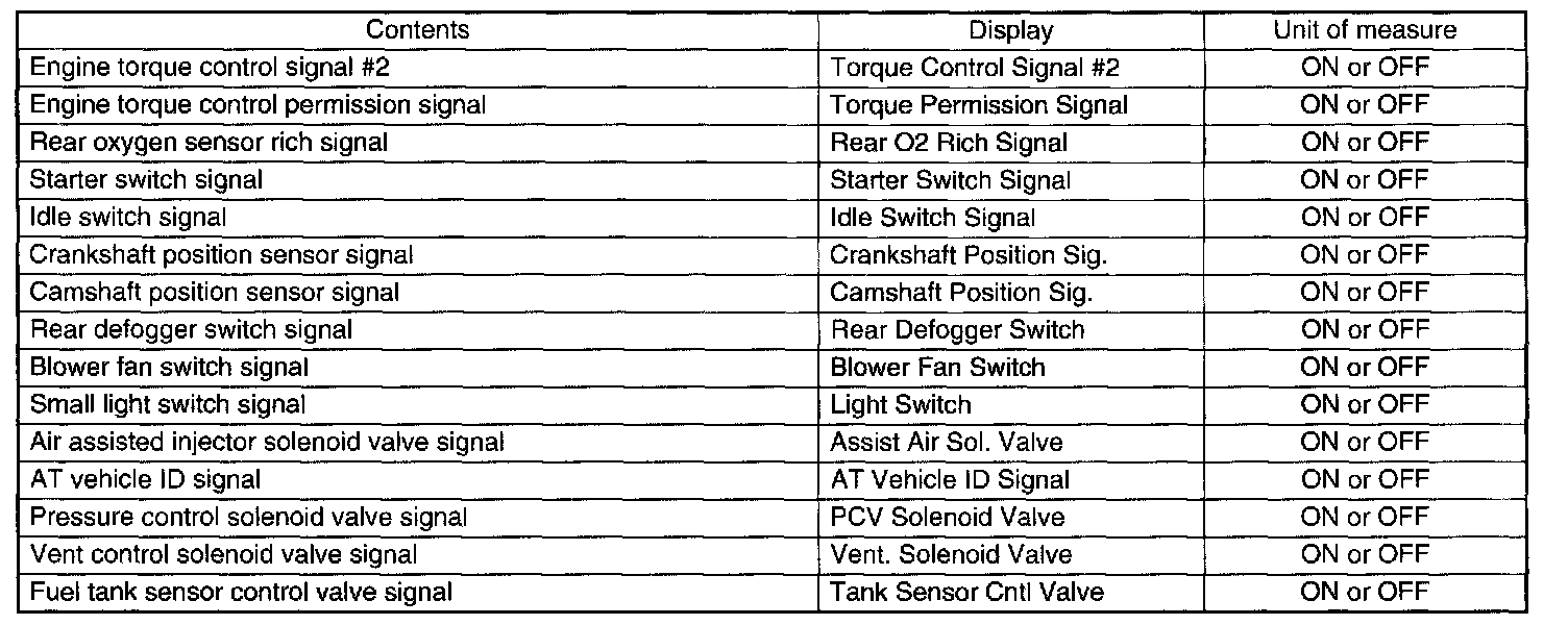 READ CURRENT DATA FOR ENGINE. (OBD MODE)
