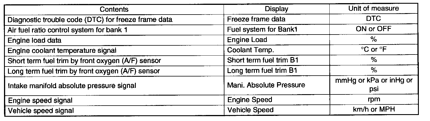 READ FREEZE FRAME DATA FOR ENGINE. (OBD MODE)