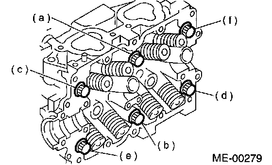 2) Tighten all bolts 29 Nm (3.0 kgf-m, 22 ft. lbs.) in alphabetical sequence. Then tighten 69 Nm (7.0 kgf-m, 51 ft. lbs.) in alphabetical sequence.