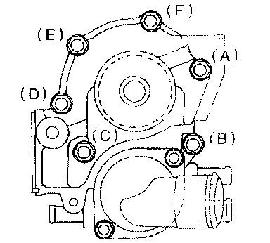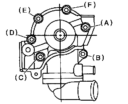 6) Tighten bolts (o) through (v) in alphabetical sequence 10 Nm (1.0 kgf-m, 7.2 ft. lbs.)
