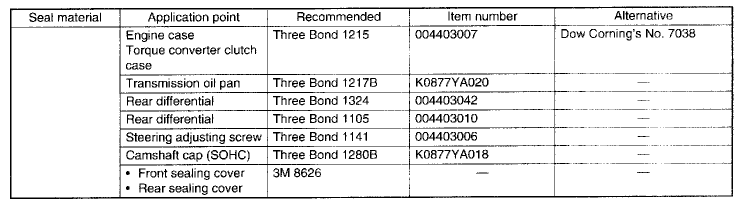 To insure the best performance, always use the specified oil, gasoline, adhesive, sealant, etc. or that of equivalent quality.