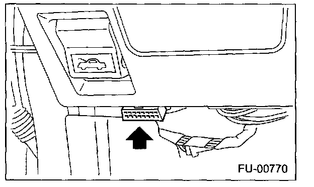 2. Open the cover and connect the OBD-II general scan tool to the data link connector located in the lower portion of the instrument panel (on the driver's side).