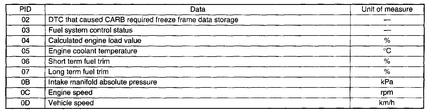 MODE $02 (POWER TRAIN FREEZE FRAME DATA)