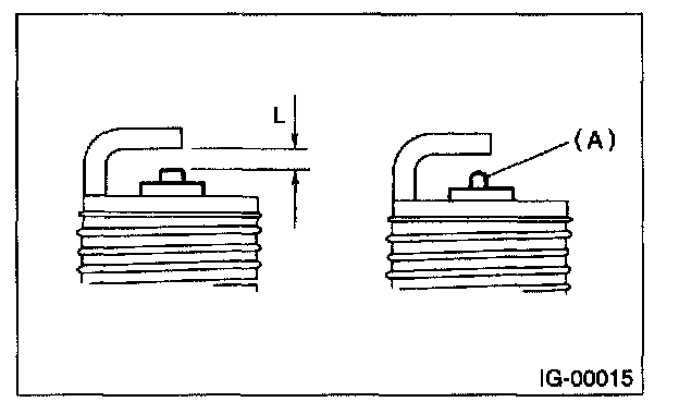 NOTE: Replace with a new spark plug if this area (A) is worn to "ball" shape.