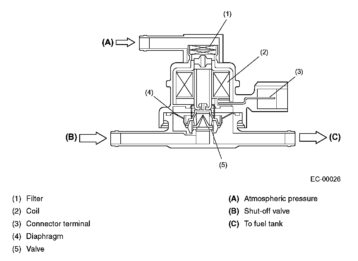 The fuel tank sensor control valve closes the passage from the fuel tank to the air when the OBD system is activated to make a diagnosis.