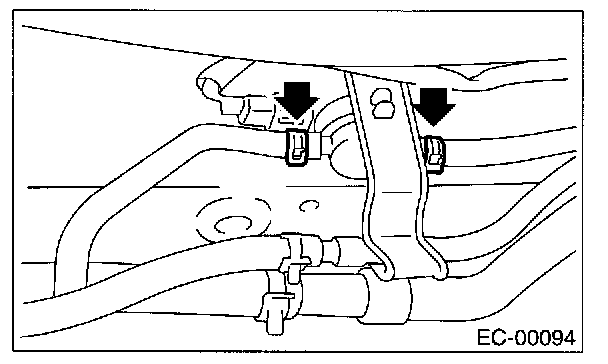 5. Disconnect two evaporation hoses from pressure control solenoid valve.