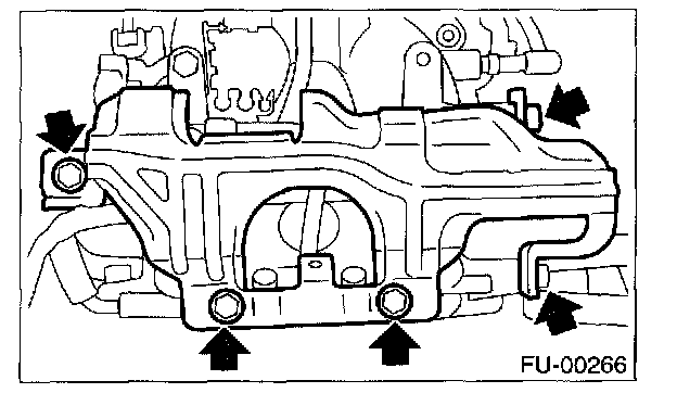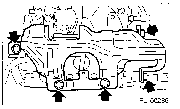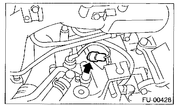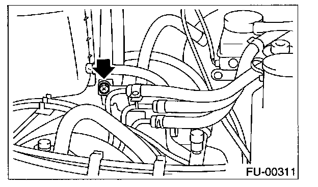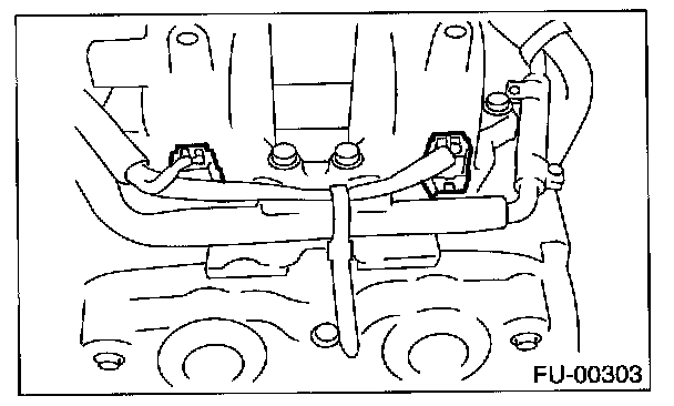 13. Remove bolt which holds fuel pipe on the left side intake manifold.