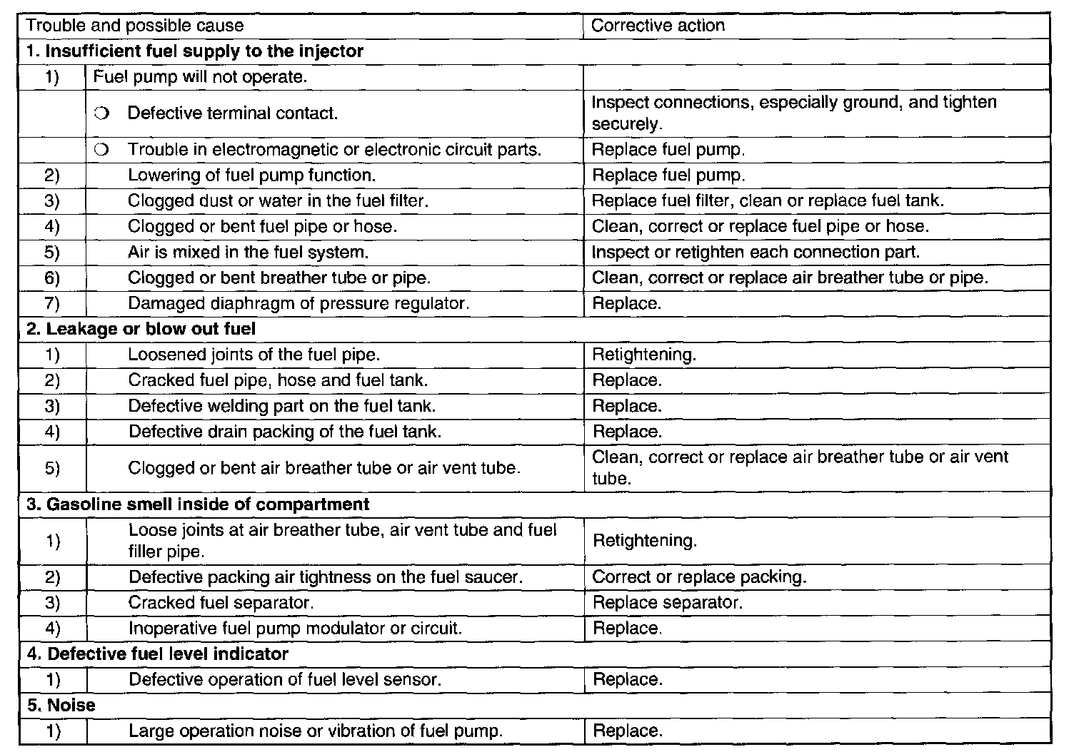 Fuel System Trouble in GeneralInspection: