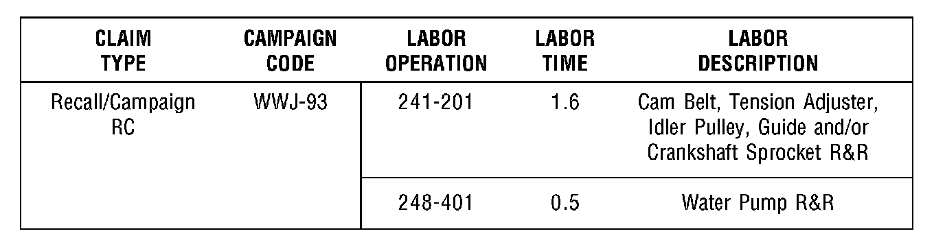 Engine Water Pump Replacement - Use the following information for claim submission: