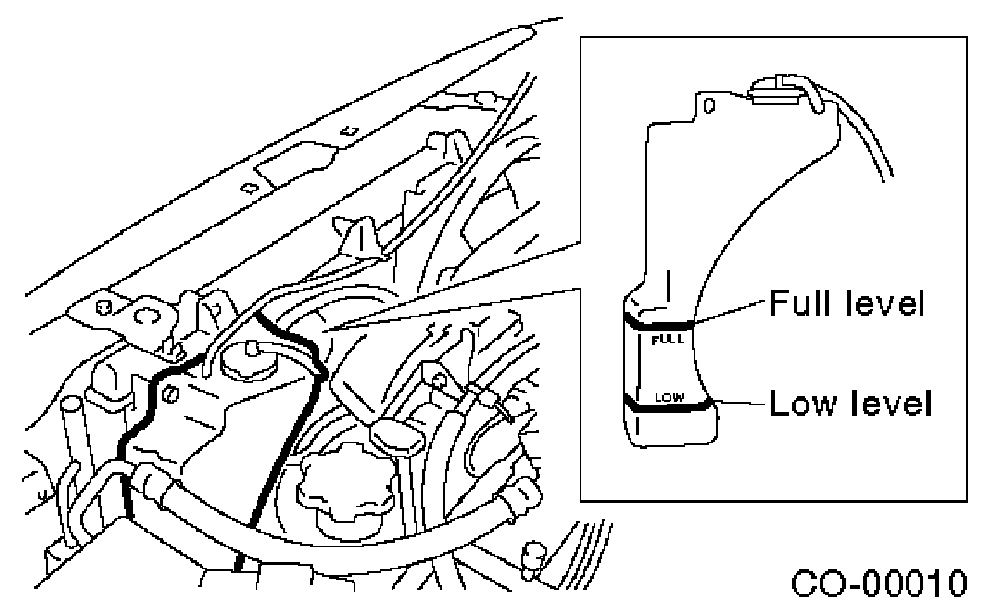 2. Fill engine coolant into the reservoir tank up to Full level.