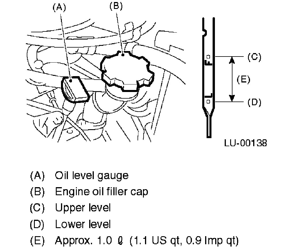 NOTE: To prevent overfilling the engine oil, do not add oil above "F" line when the engine is cold.