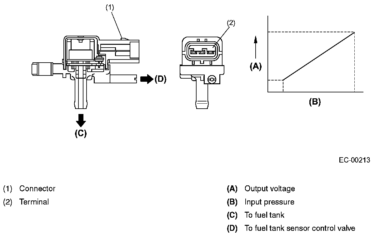 FUEL TANK PRESSURE SENSORThe fuel tank pressure sensor is installed on the top of the fuel tank and measures the pressure in the fuel tank.