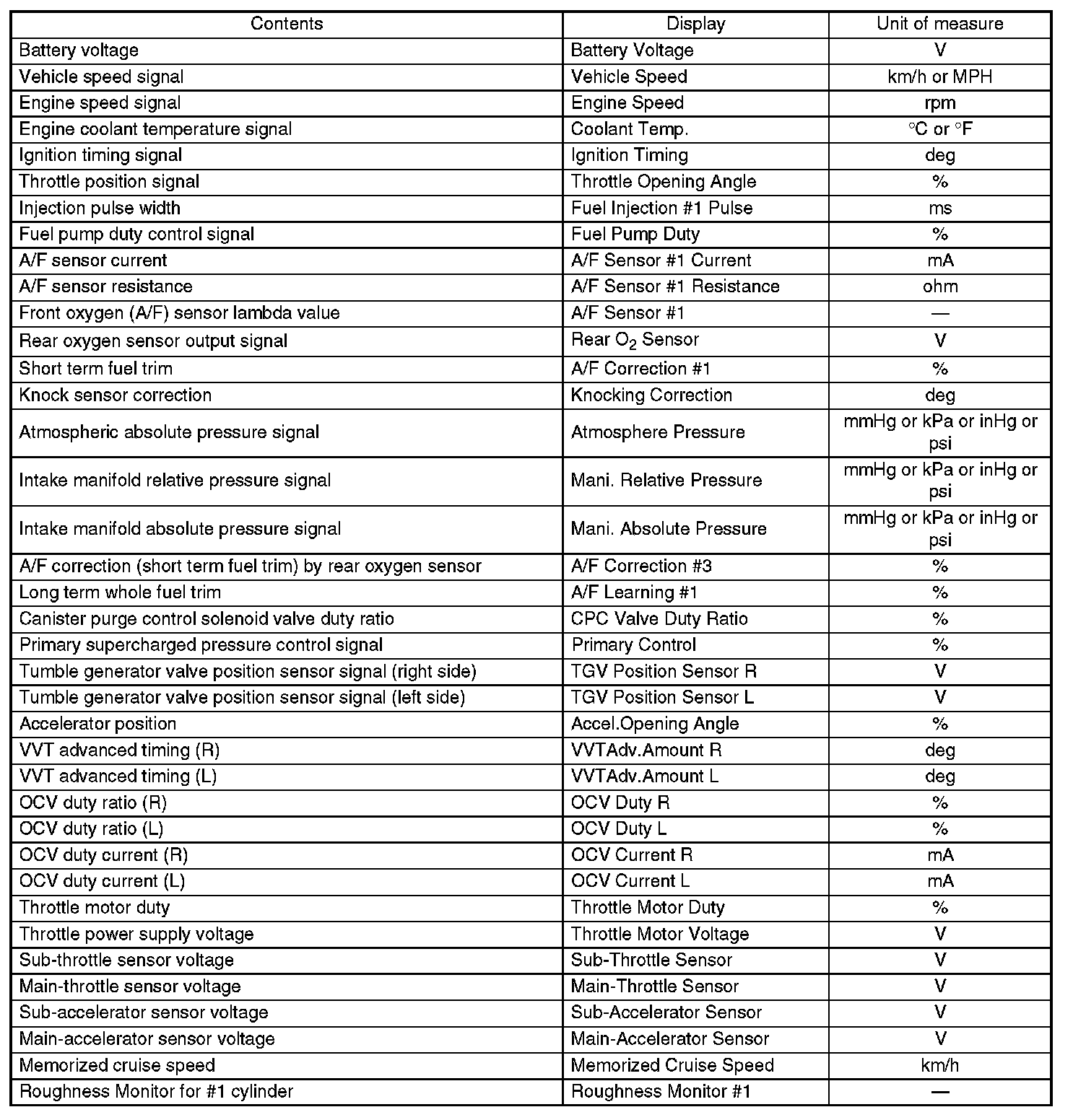 4. READ CURRENT DATA FOR ENGINE. (NORMAL MODE)
