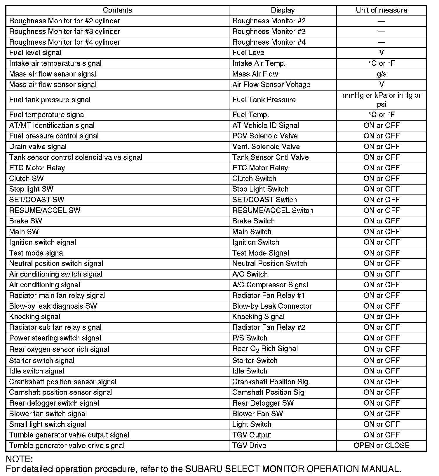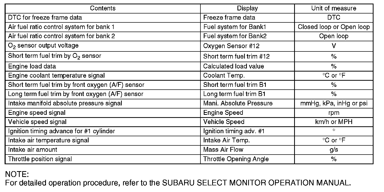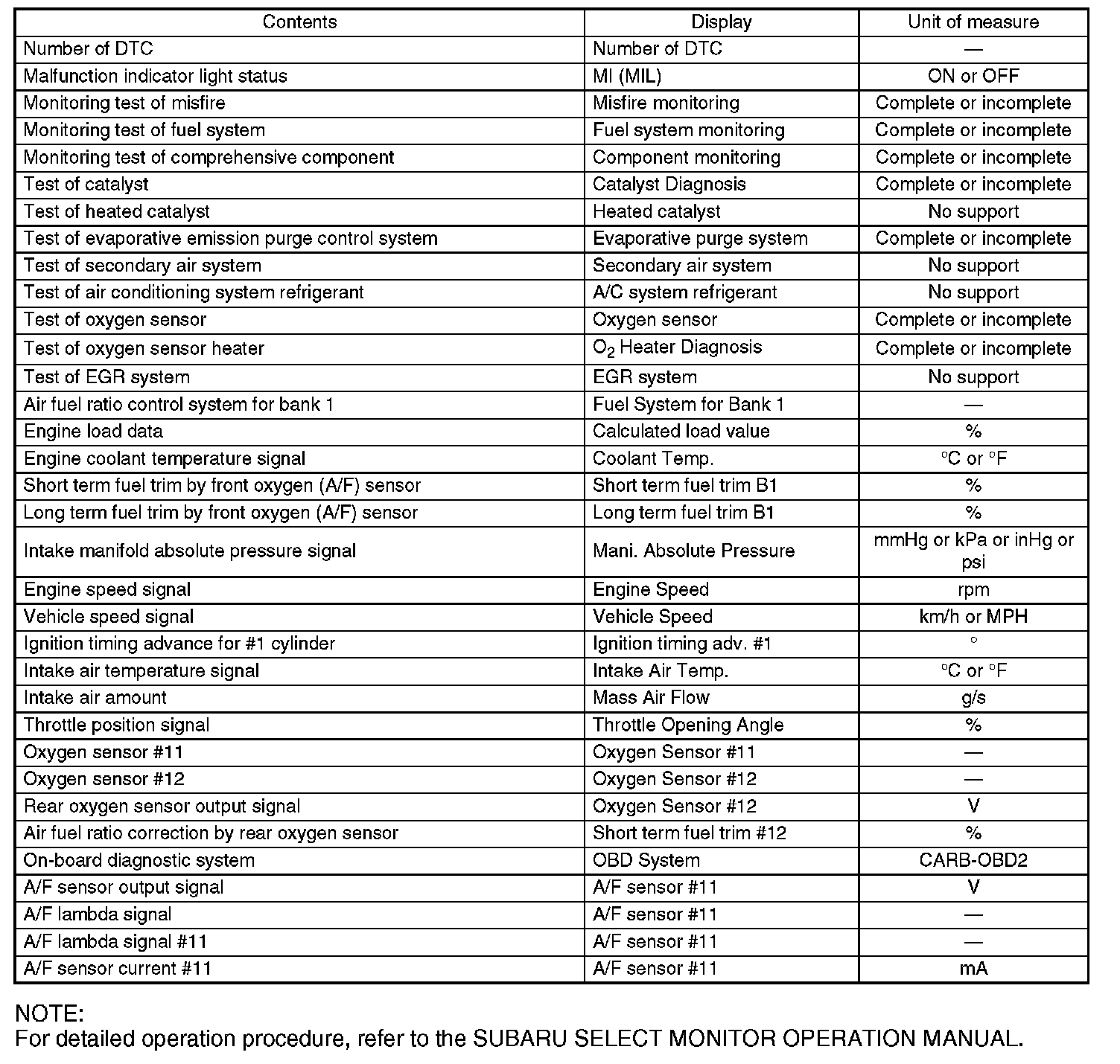 6. Using the Subaru Select Monitor, call up the DTC and various data, and then record them.