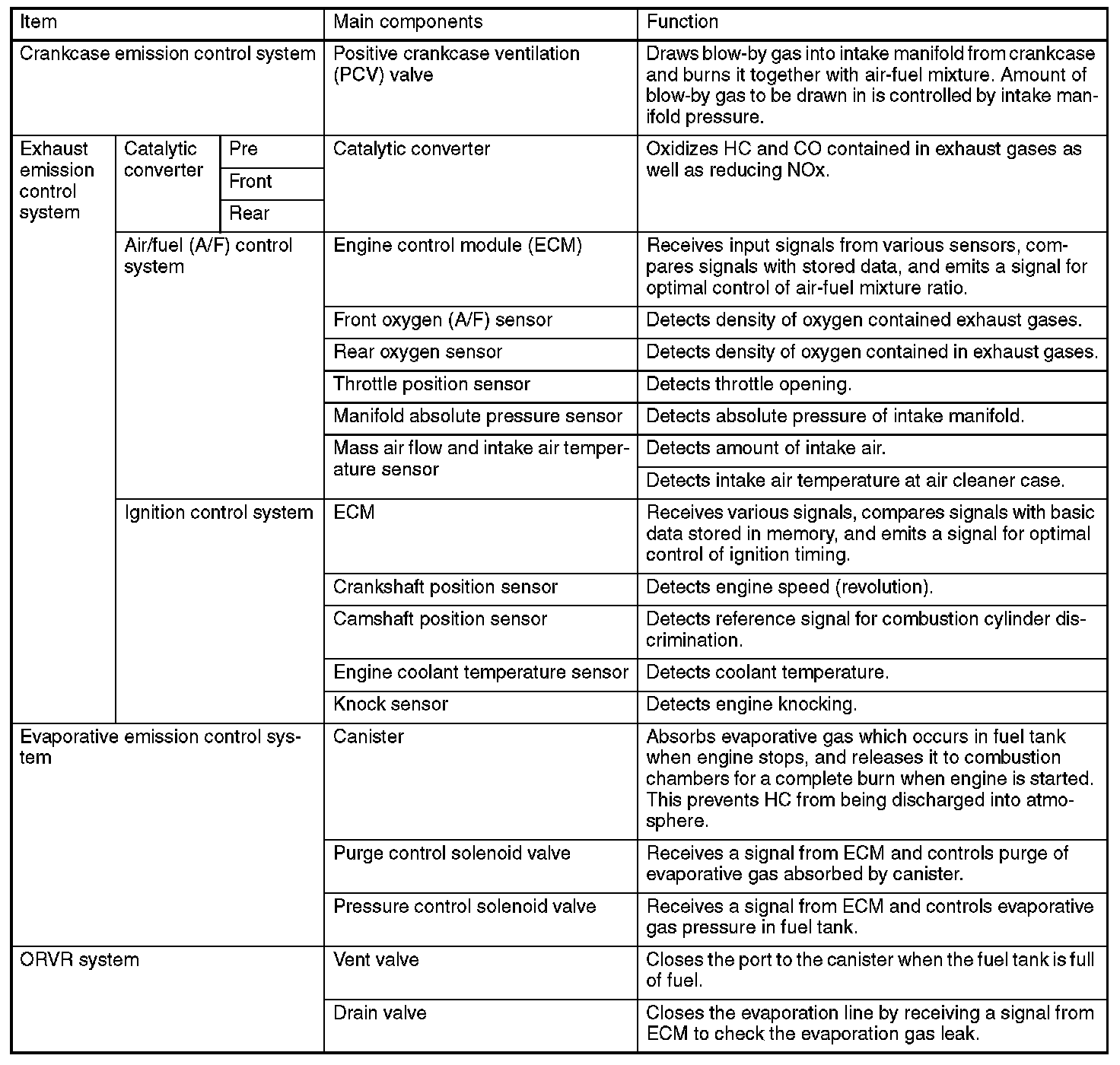 System OverviewThere are three emission control systems which are as follows: