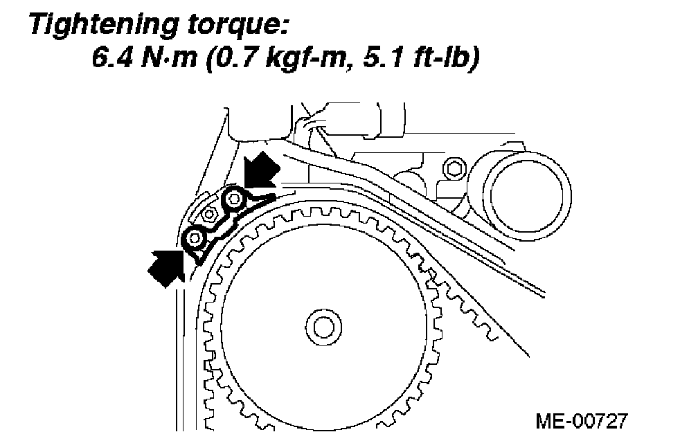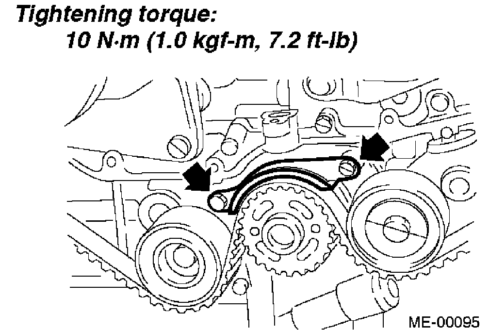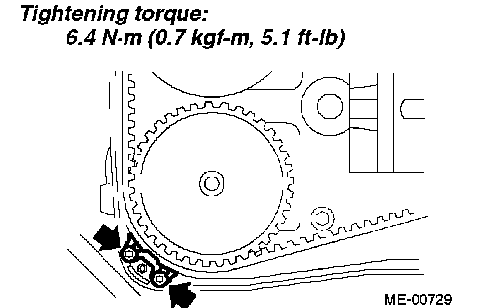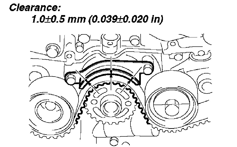 Using white paint, put alignment and/or arrow marks on the timing belts in relation to the sprockets