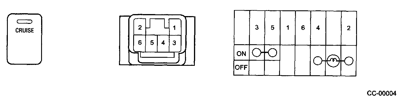 2. The cruise control system becomes deactivated if the ignition switch is turned ON with any of the cruise control switches (including the main switch) in the ON position. The system deactivating function is retained until the ignition switch is turned OFF.