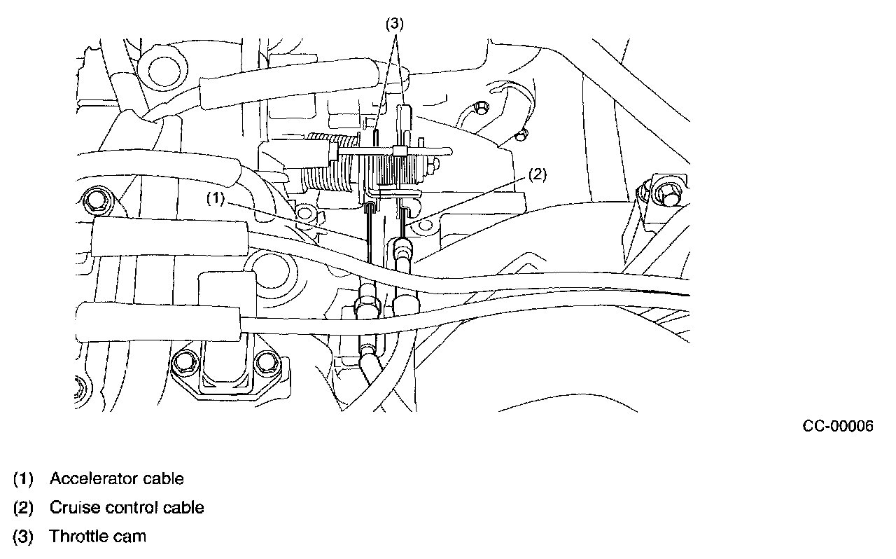 This signal is transmitted to the actuator located in the engine compartment. The actuator operates the throttle cam as necessary to keep the preset vehicle speed.