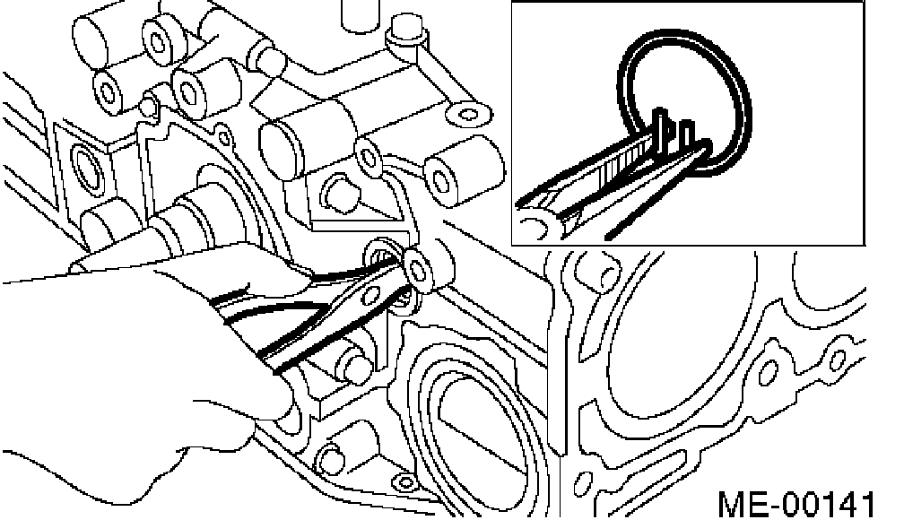 19. Install the circlip. Install the circlips in piston holes located opposite of service holes in cylinder block, when positioning all pistons in the corresponding cylinders.