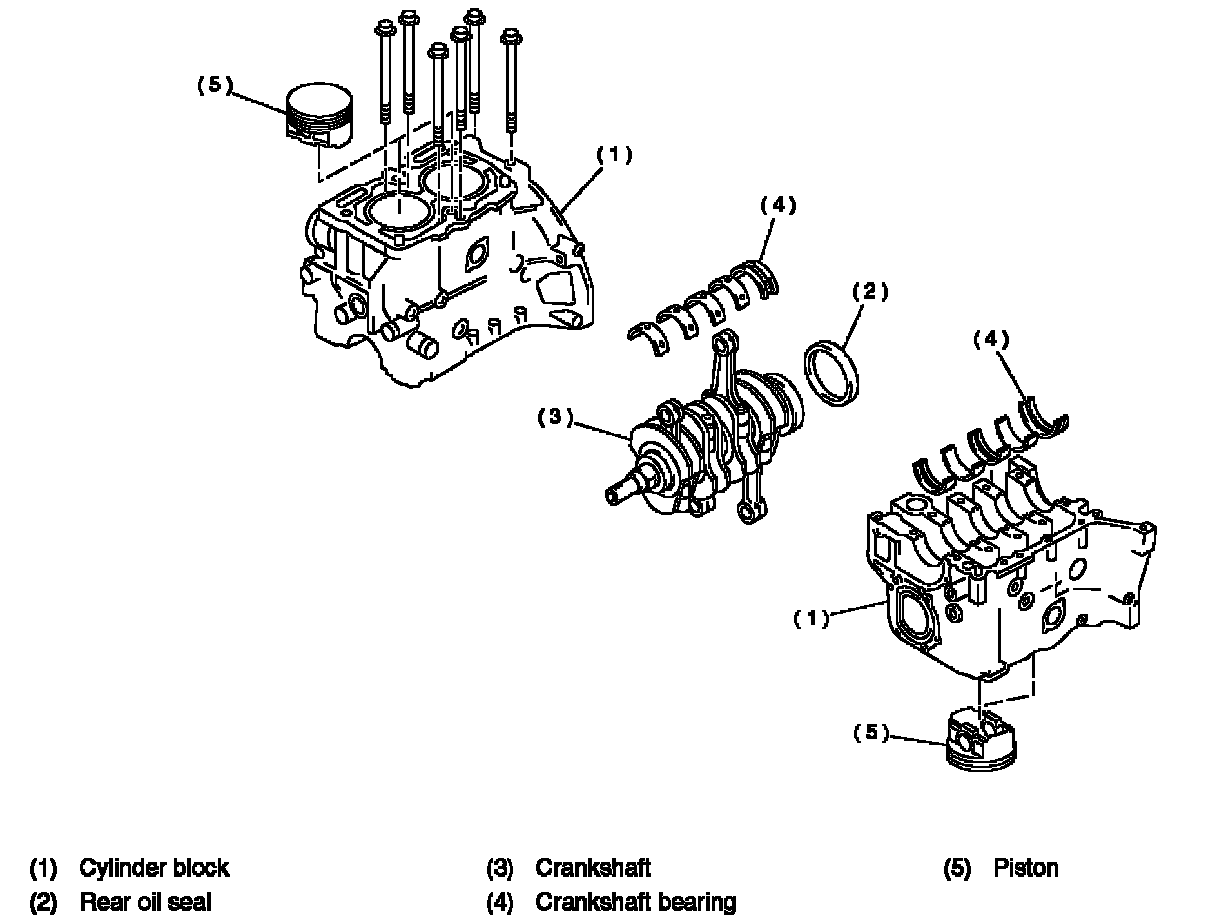1. Remove oil in the mating surface of bearing and cylinder block before installation. Also apply a coat of engine oil to crankshaft pins.