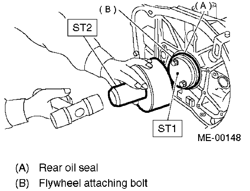 b. Press the bushing with ST after applying oil on the periphery of bushing.