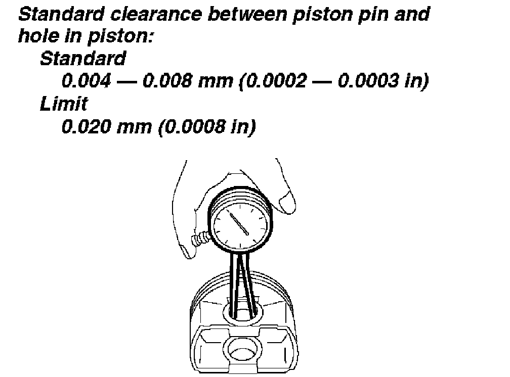 3. Make sure that the piston pin can be inserted into the piston pin hole with a thumb at 20°C (68°F). Replace if defective.