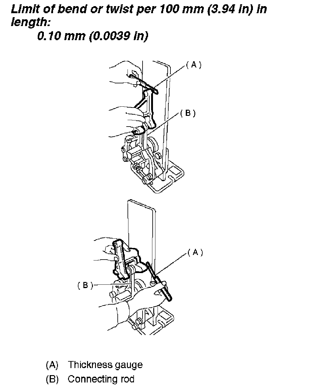 2. Check for bend or twist using a connecting rod aligner. Replace the connecting rod if the bend or twist exceeds the limit.