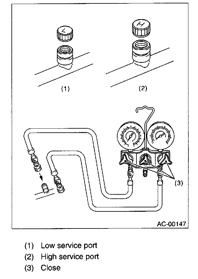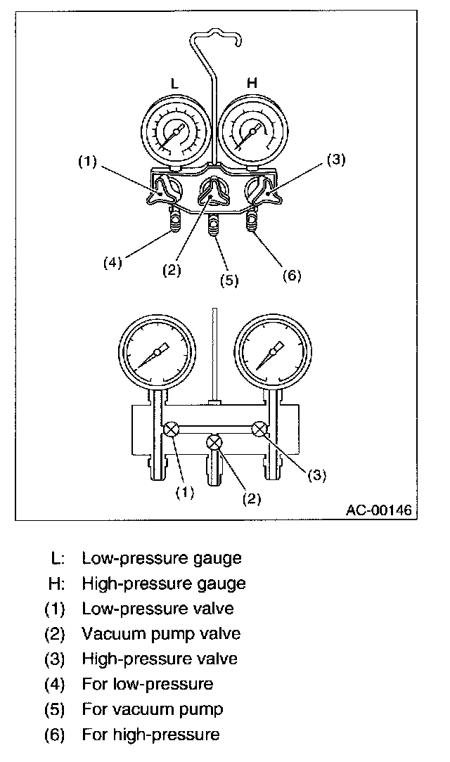 CAUTION: Do not open the high-pressure valve. Be sure to open the low-pressure valve.