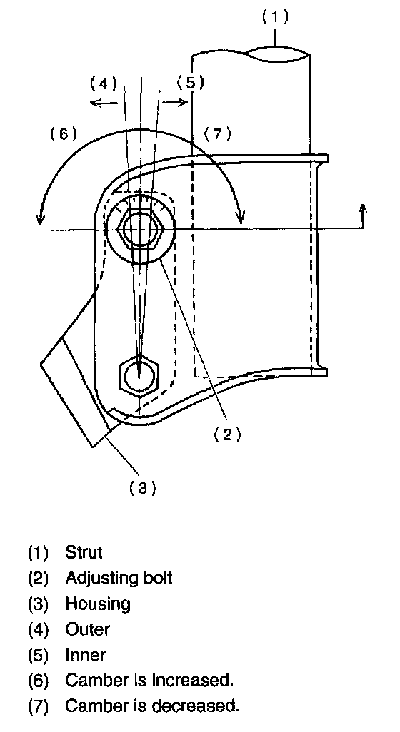 2) Turn the camber adjusting bolt so that camber is set at the specification.