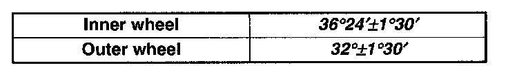 Toe-in: 2 ± 3 mm (0.079 ± 0.118 inch)
