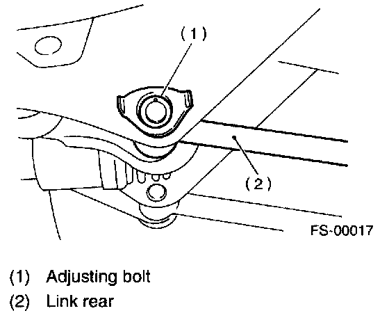 2) Turn the adjusting bolt head until toe-in is at the specification.