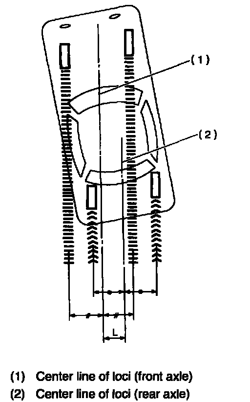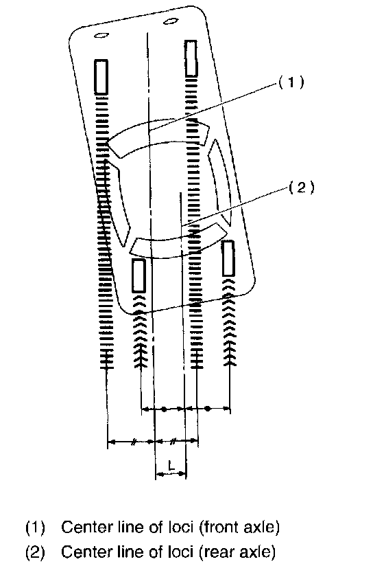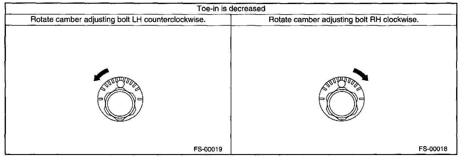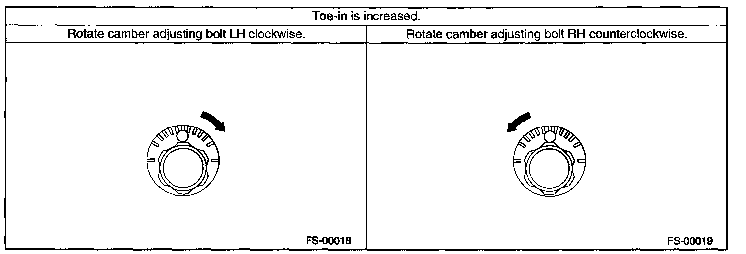 2) When one rear wheel is adjusted in a toe-in direction, adjust the other rear wheel equally in toe-out direction, in order to make thrust angle adjustment.