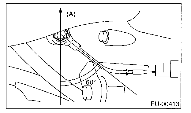 NOTE: The extraction area of the knock sensor cord must be positioned at a 60 ° angle relative to the engine rear.