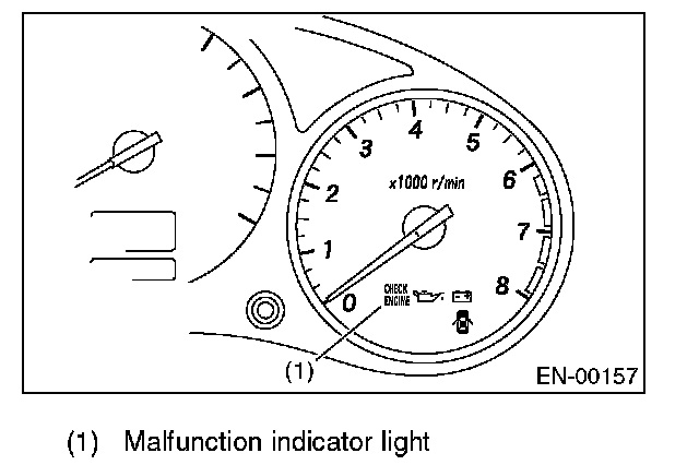 ACTIVATION OF MALFUNCTION INDICATOR LIGHT1. When the ignition switch is turned to ON (engine off), the malfunction indicator light in the combination meter illuminates.