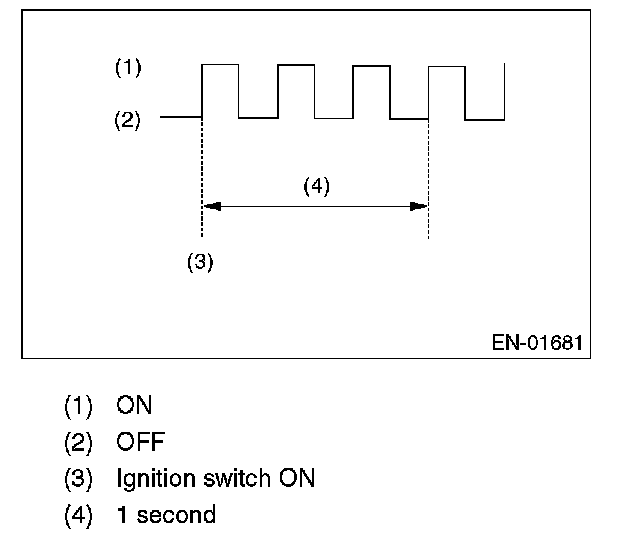 4. When the ignition switch is turned to ON (engine off) or to START with the test mode connector connected, the malfunction indicator light blinks at a cycle of 3 Hz.