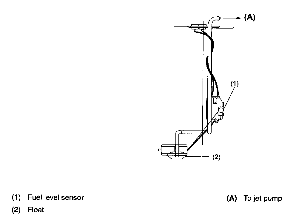 This sensor detects the level of the fuel in the sub-compartment (the compartment in which the fuel pump is not located) and acts as part of the fuel transfer line when the jet pump is in operation to maintain the fuel in both compartments at the same level.