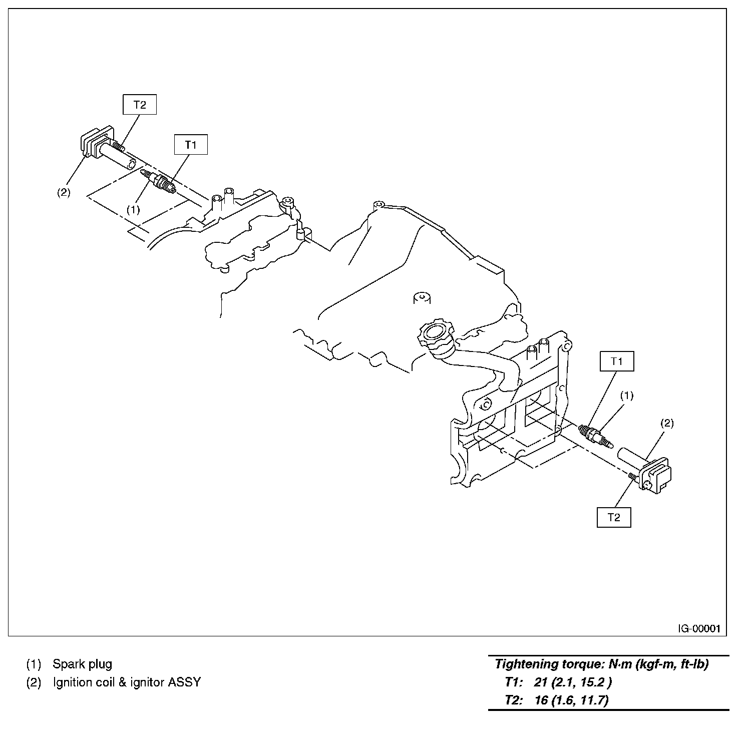 Direct ignition type has been adopted. Refer to the "Spark Plug; Removal and Installation" for removal procedure.