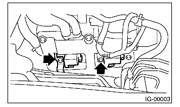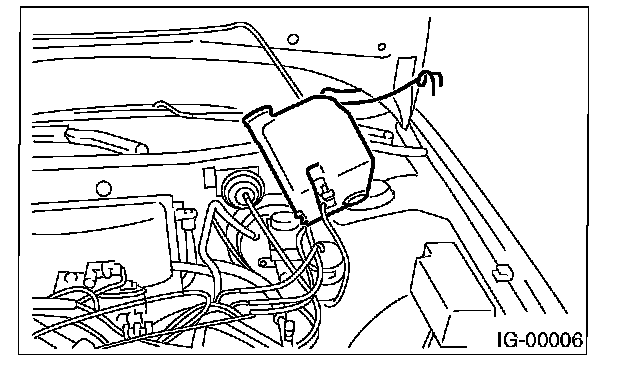 4. Remove the two bolts which hold washer tank, then take the tank away from working area.