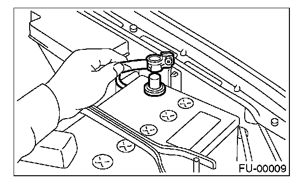 1. Disconnect the battery cables, and then remove the battery and battery carrier.