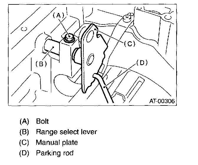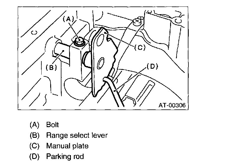 12. Remove bolts securing select lever, then remove select lever, manual plate and parking rod.